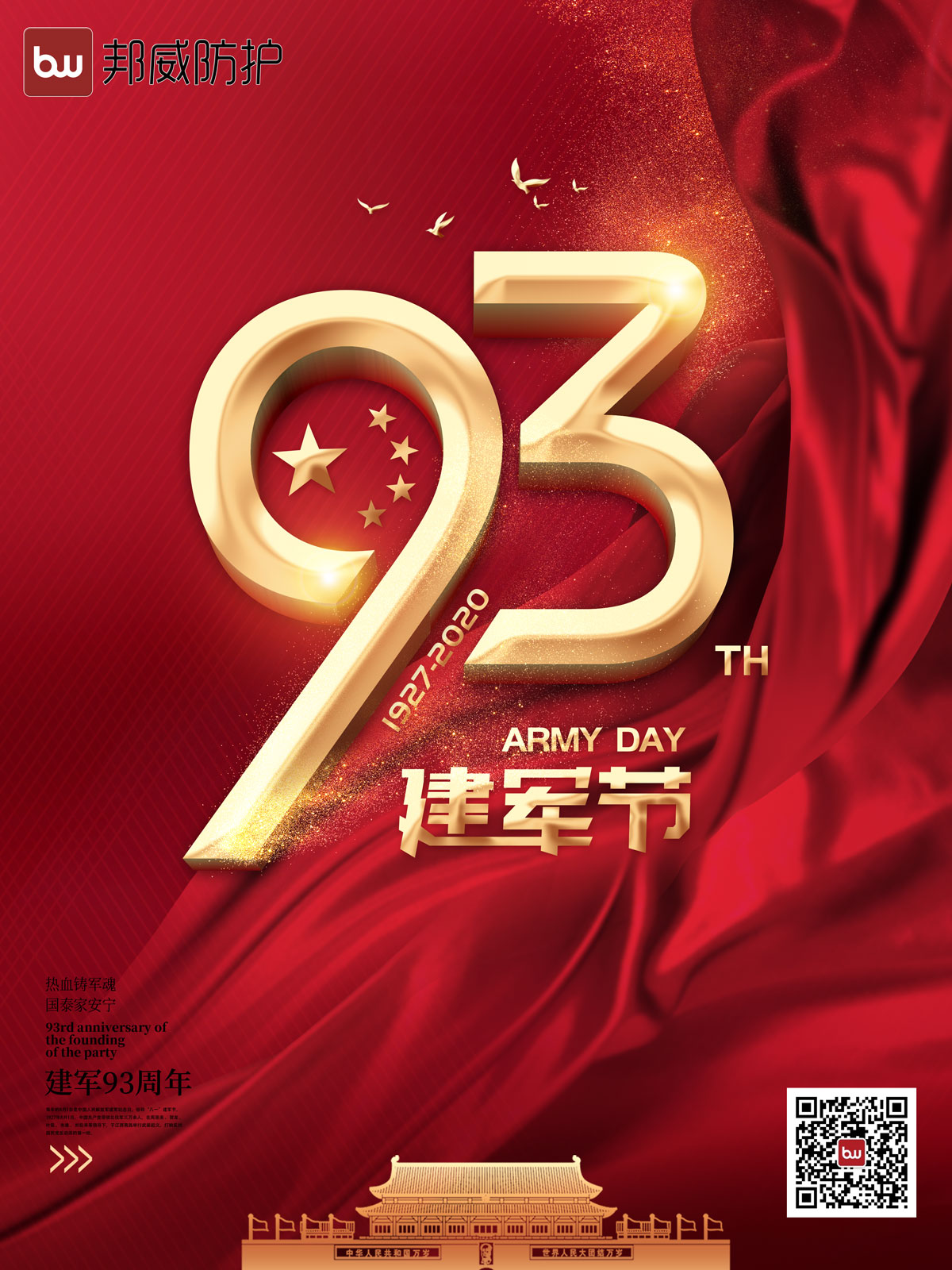 保家衛(wèi)國,你赤膽忠心;戍守邊疆,你義無反顧;服務(wù)人民,你一心一意;生死關(guān)頭,你大義凜然;危難之前,你盡顯英雄本色。2020年8月1日,中國人民解放軍成立93周年。邦威防護(hù)股份有限公司全體員工向中國人民解放軍致敬!